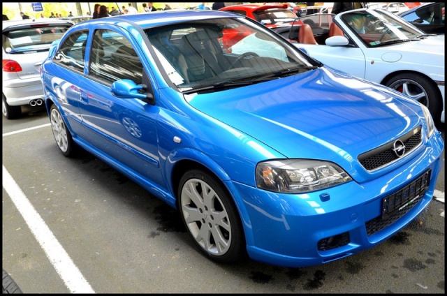 Modif: Pare choc avant Opc, Calandre sans sigle Irmscher, Phares avant Opc, Phares arrière fumé, Cligno. latéral fumé, Jantes 18 Noir, Caches jantes Opel en résine plastifié bombé, Pneus 225/35 18, Étriers bleu foncé brillant, Vitres teintées noirs foncées, Amorto. et Suspensions courtes -55 à l'avant, -40 à l'arrière, Poste Alpine kit éclaté Focal à l'avant et Hauts parleurs Focal à l'arrière.