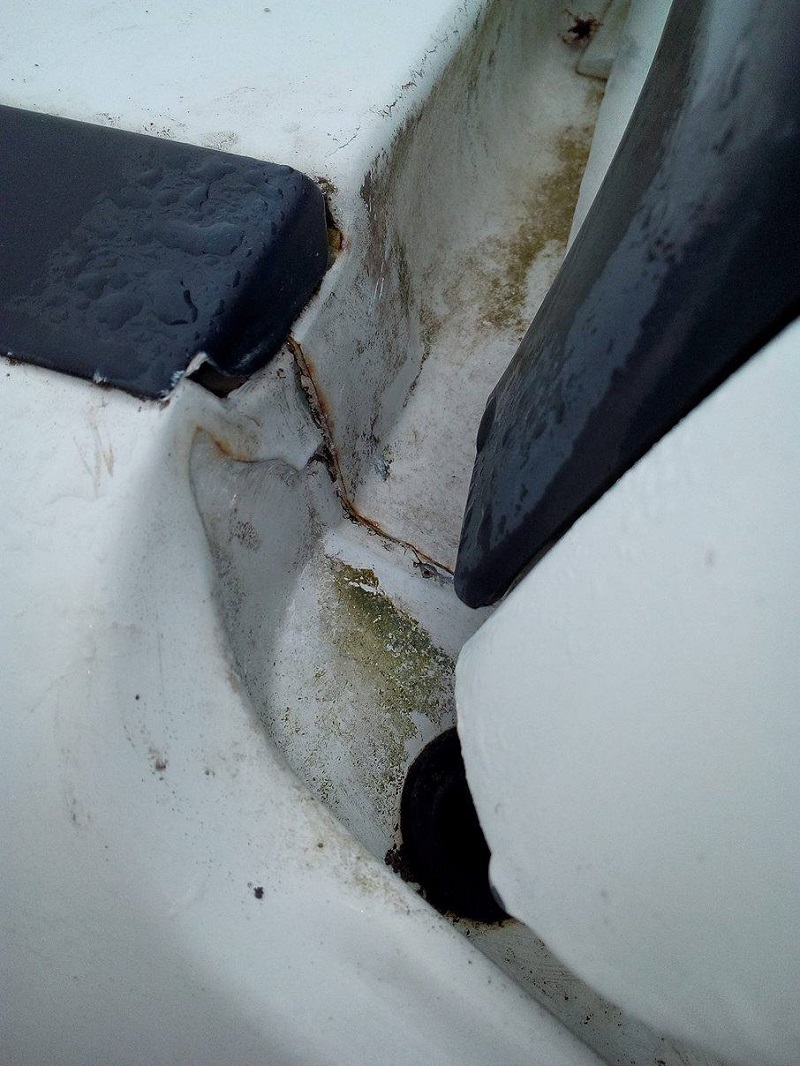 Impossible de voir quoique ce soit là où c'est situé, impossible de sentir quoique ce soit puisque pour y passer les mains on peut pas, aucun indice, j'en ai marre, j'ai pas envie que la caisse pourrisse à cause d'une entrée d'eau à la noix